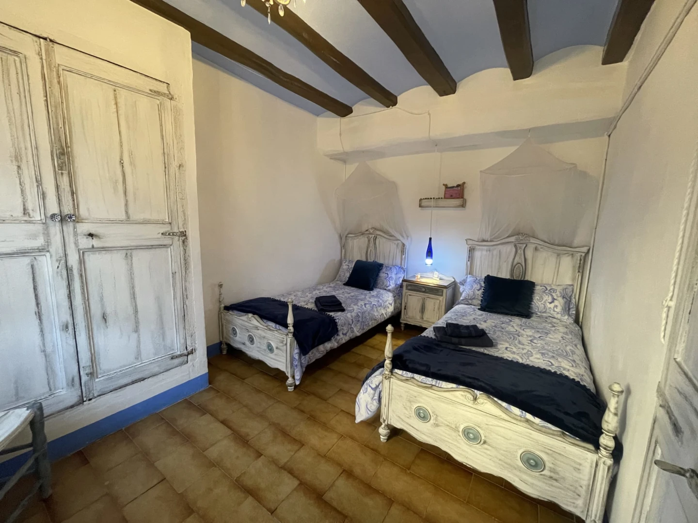 Després de la imponent porta per on antigament entraven carros i cavalls, la casa revela els seus secrets: quatre dormitoris temàtics inspirats en contes d’infantesa. Dormir sota l’escultura de Caperucita Roja, somiar amb el Principito, descansar amb la Princesa del Guisant o deixar-se envoltar per les ratetes que ballen amb el Flautista de Hamelin… aquí tot és possible.