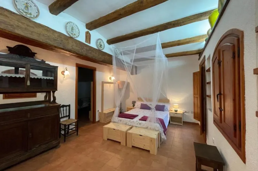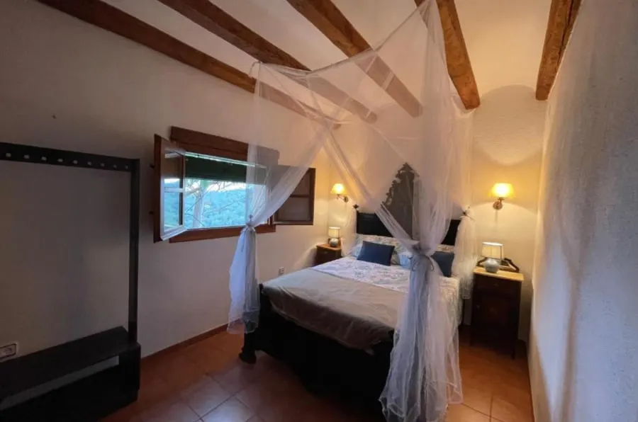 Con capacidad para 15 personas, la masía dispone de 5 acogedoras habitaciones (tres dobles, una triple y una cuádruple), además de sofá cama y cama supletoria. Sus dos baños completos —uno con ducha y otro con bañera—, la cocina totalmente equipada y un amplio salón presidido por una imponente chimenea invitan a reunirse y disfrutar. Cada rincón está decorado con piezas originales que evocan la esencia rural de las masías catalanas, donde varias generaciones compartían la vida en el campo.